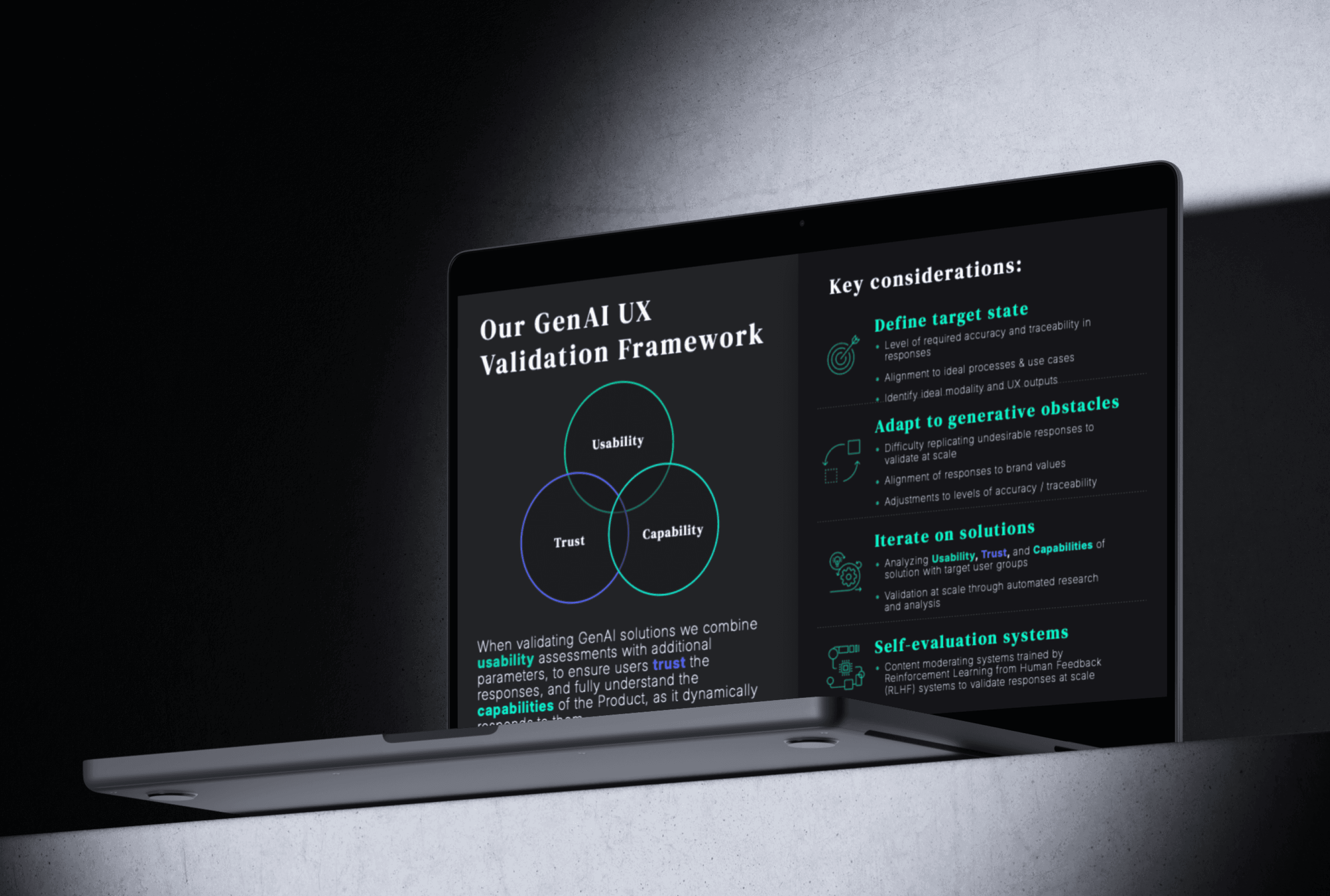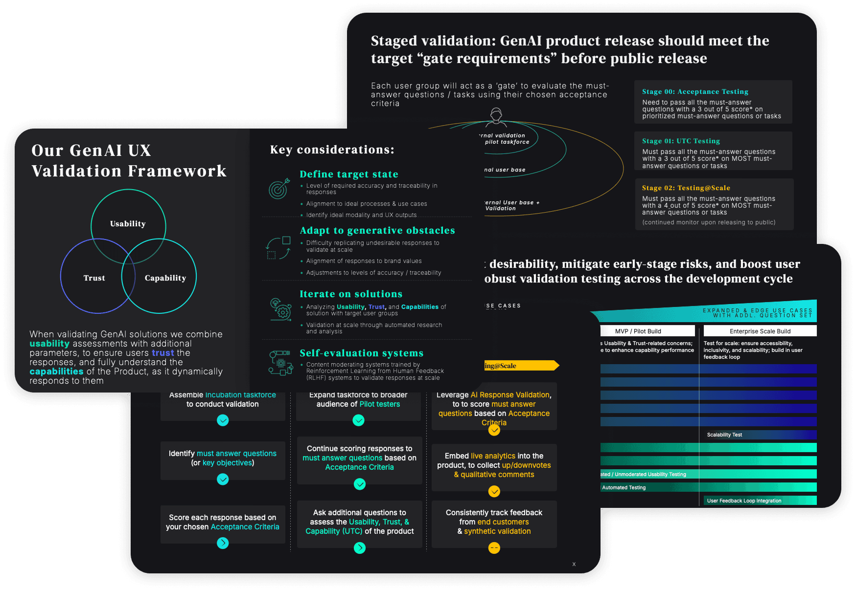 I designed a suite of methodologies and frameworks that were used by Product teams to increase the adoption of the GenAI products they were building for our clients.