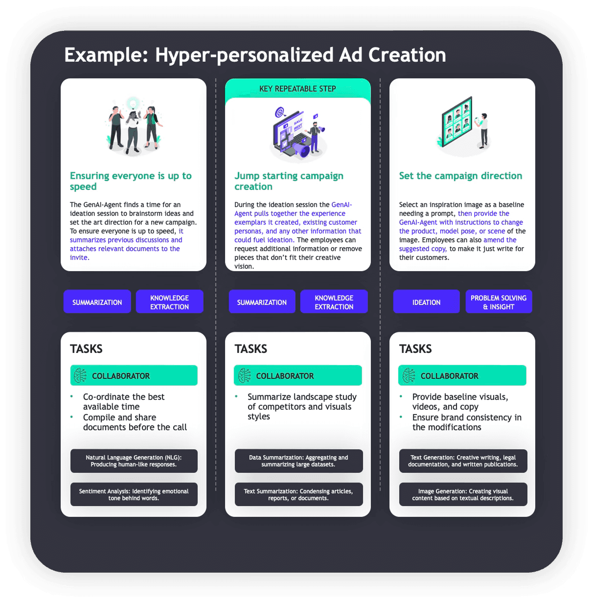 I comprehensively mapped each step of their existing and future workflows, mapping the GenAI skills required, and human oversight archetype to each stage.